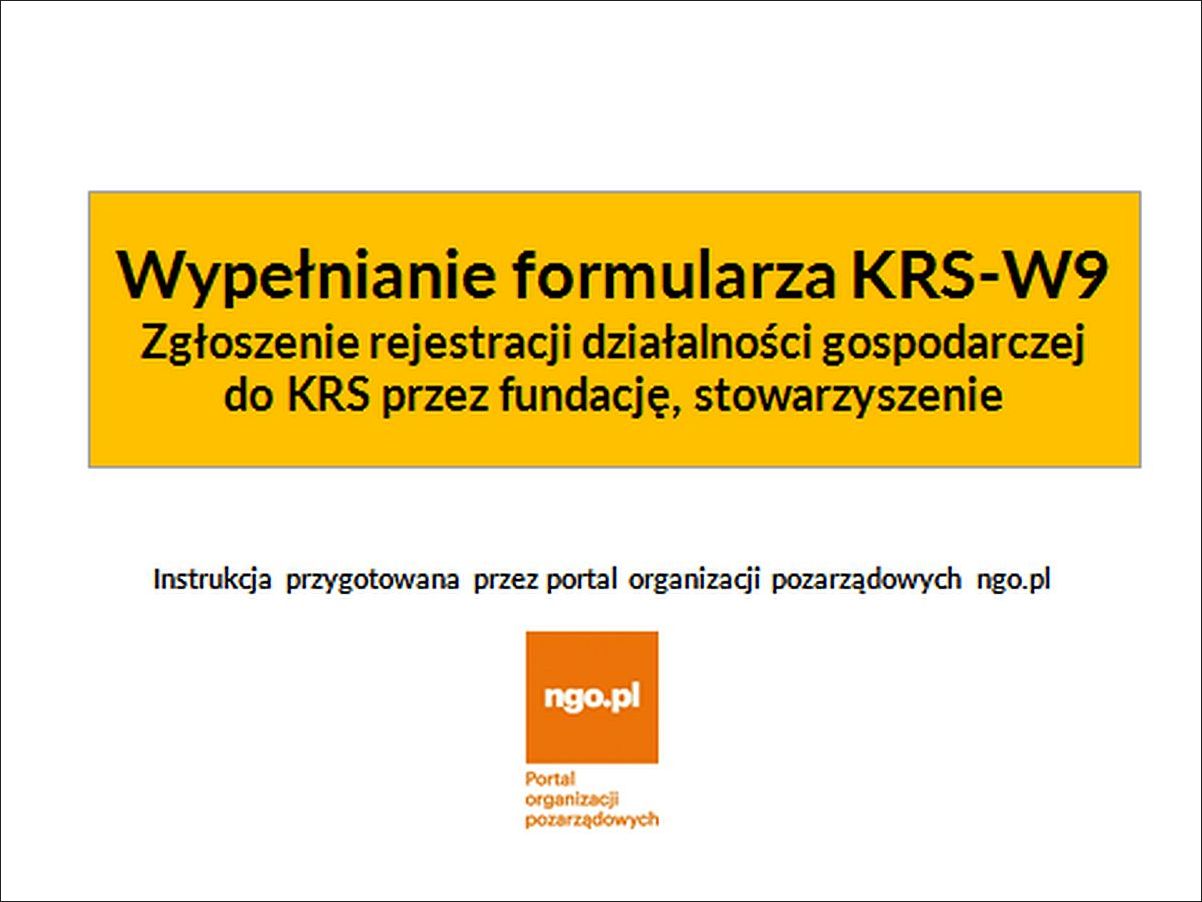 Zapraszamy do skorzystania z instrukcji wypełniania formularza KRS-W9 przez organizacje pozarządowe rejestrujące działalność gospodarczą w Krajowym Rejestrze Sądowym.