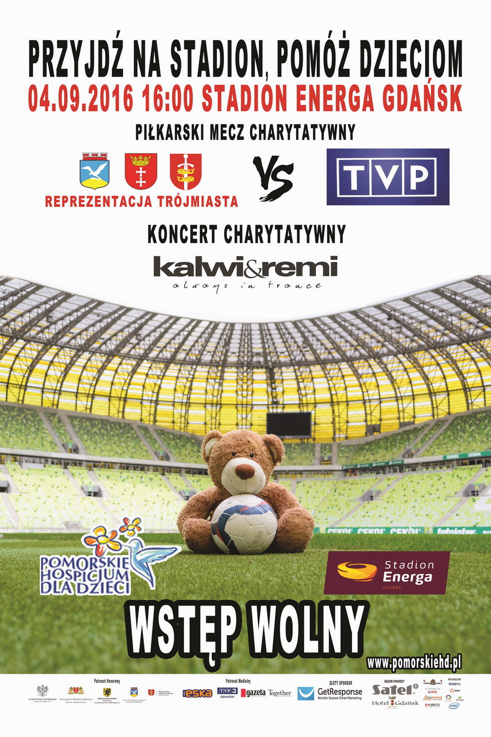 4 września na Stadionie Energa Gdańsk odbędzie się wyjątkowe wydarzenie charytatywne „Przyjdź na stadion, pomóż dzieciom”– tego dnia do piłkarskiego starcia staną naprzeciw siebie Przyjaciele Pomorskiego Hospicjum dla Dzieci, którzy, podzieleni na dwie ekipy, zagrają Wielki Mecz Charytatywny: gwiazdy Gdańska, Gdyni i Sopotu kontra Drużyna TVP.