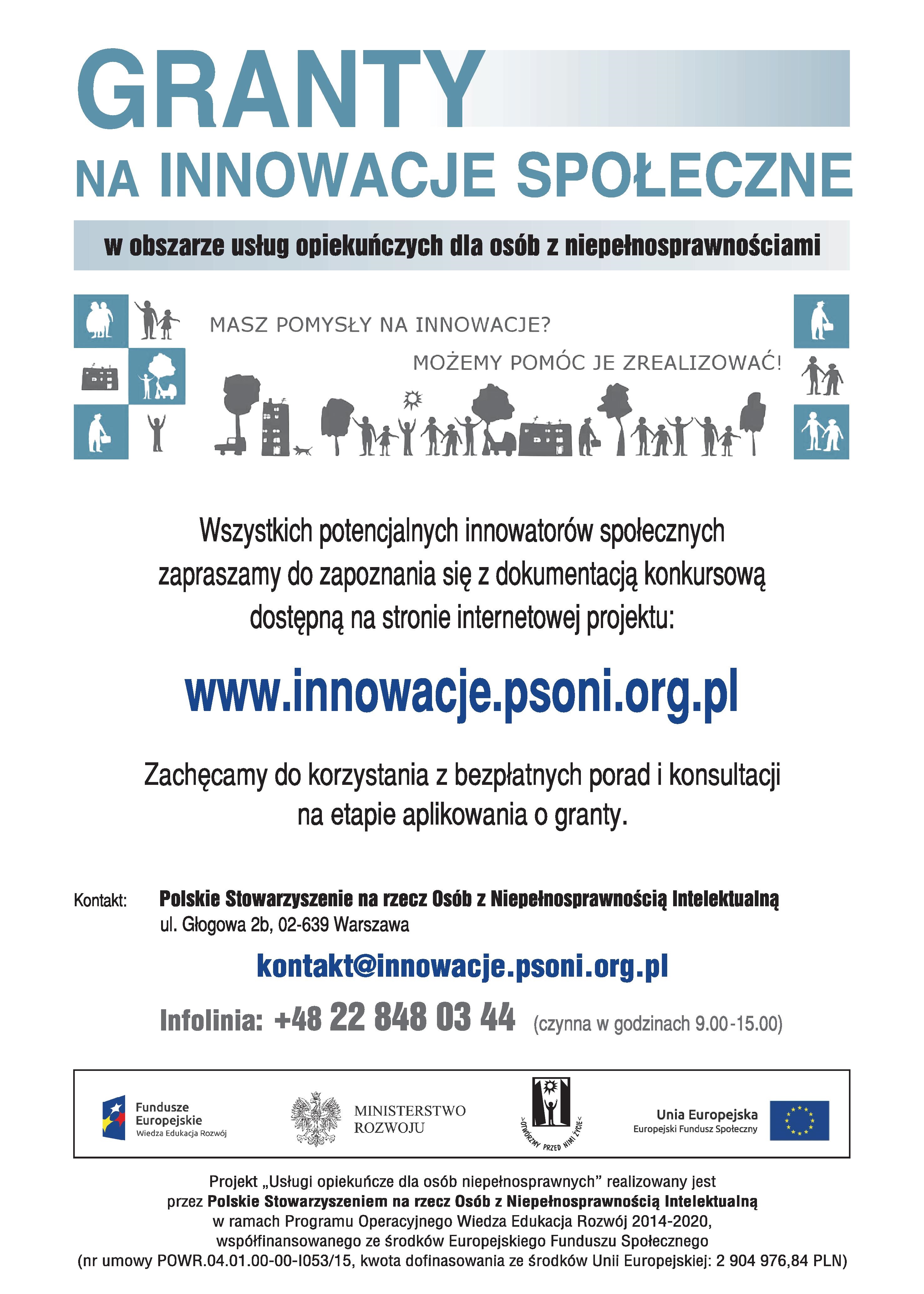 Szczegółowe informacje na temat projektu, procedur udzielania grantów oraz wzory dokumentów dostępne są na stronie www.innowacje.psoni.org.pl.