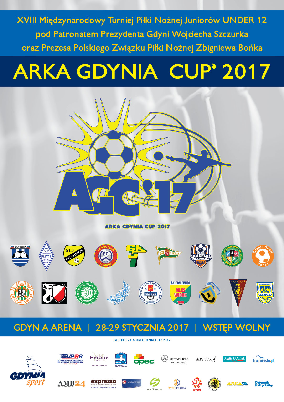 Zimowa edycja XVIII Międzynarodowego Turnieju Piłki Nożnej Juniorów U 12 ARKA GDYNIA CUP 2017, której patronowali Prezydent Gdyni Wojciech Szczurek oraz Prezes PZPN Zbigniew Boniek już za nami. Zawody po raz ósmy odbyły się w hali GDYNIA ARENA a po raz siódmy na profesjonalnej piłkarskiej wykładzinie Astro Pro Floor, w ramach współpracy z naszym bardzo ważnym Partnerem – SUPRA SPORT. Prestiż zawodów dzięki reprezentantom klubów Ekstraklasy, udziałowi jak zawsze silnej FC Batlika Kaliningrad oraz wysokiemu poziomowi sportowemu wielu zespołów podnosi się z każdym rokiem. Poziom organizacyjny goszczące u nas kluby oraz relacjonujące imprezę media oceniają na maksymalnie wysoki, czego dowodem są przesyłane do nas pochwały i słowa najwyższego uznania za pełen profesjonalizm w wykonywaniu zadań. Wysokie oceny są zasługą nie tylko sztabu zarządczego imprezy ale także wolontariuszy gdyńskich szkół i trójmiejskich uczelni, którzy przez kilka dni non stop byli do dyspozycji goszczących w Gdyni zespołów, którymi dowodziła znakomita organizatorka a na co dzień manager obsługi turystycznej w Gdyni p. Agata Szparagowska.