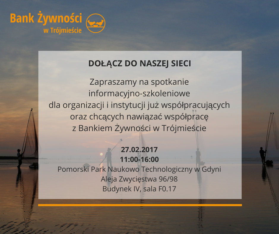 27 lutego Bank Żywności w Trójmieście organizuje spotkanie informacyjno-szkoleniowe dla organizacji i instytucji już współpracujących oraz chcących nawiązać współpracę z Bankiem Żywności w Trójmieście.