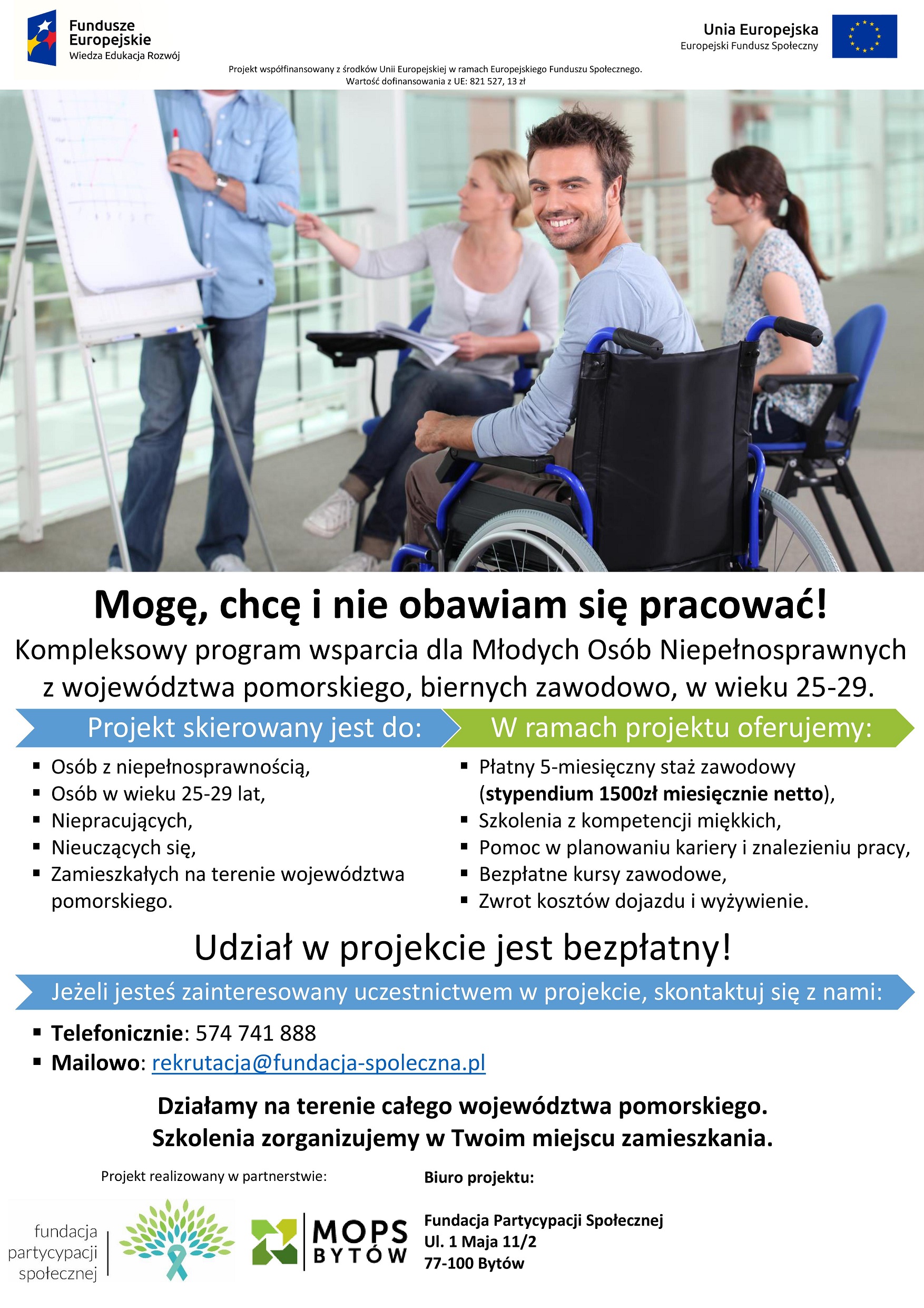 PROFESJA CAZ Sp. z o.o. wraz z Fundacją Partycypacji Społecznej zapraszają osoby niepełnosprawne w wieku 20 – 29 lat z woj. pomorskiego do udziału w projektach realizowanych z Funduszy Europejskich.