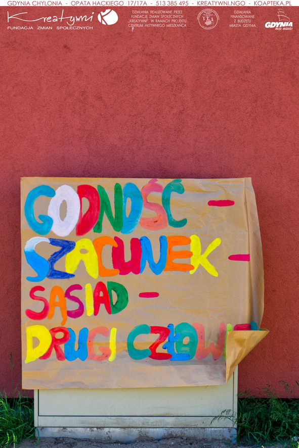 Mam nietypową prośbę czy możecie Państwo przesłać na e-meil: kontakt@kreatywni.ngo oraz na adres Fundacja Zmian Społecznych „Kreatywni” Gdynia, ul. Opata Hackiego 17 kartkę pocztową z gratulacjami dla Sąsiadów oraz dla władz miasta, że stawiają na rozwój sąsiedztw. Wszystkie e-meile wydrukujemy i przywiesimy na tablicę jubileuszową . Dziękujemy! Pozdrawiamy i zapraszamy do nas www.kretywni.ngo