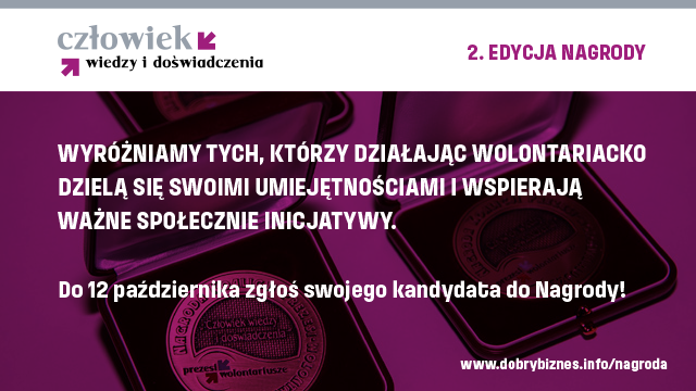 Wniosek zgłoszeniowy oraz regulamin nagrody dostępne są na portalu Koalicji Prezesiwolontariusze: www.dobrybiznes.info