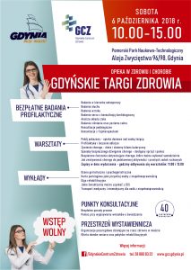 Zapraszamy 6 października 2018 roku do Pomorskiego Parku Naukowo-Technologicznego, gdzie odbędą się Gdyńskie Targi Zdrowia pt. „Opieka w zdrowiu i chorobie”. Gdyńskie Centrum Zdrowia jest pomysłodawcą i organizatorem wydarzenia, które ma na celu pomóc mieszkańcom pozyskać wiedzę dotyczącą możliwości, jakie są dostępne, aby zadbać o zdrowie oraz dotrzeć do właściwej organizacji wspierającej leczenie i opiekę w chorobie.