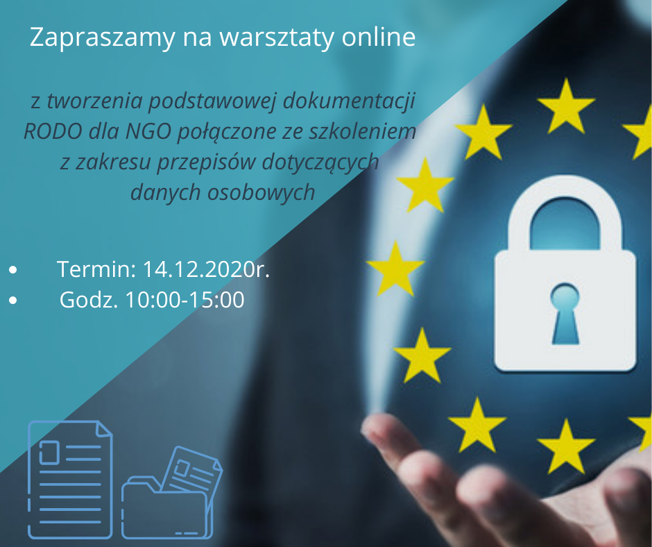 Zapraszamy wszystkich serdecznie na warsztaty online dotyczące tworzenia podstawowej dokumentacji RODO dla NGO połączone ze szkoleniem z zakresu przepisów dotyczących danych osobowych.